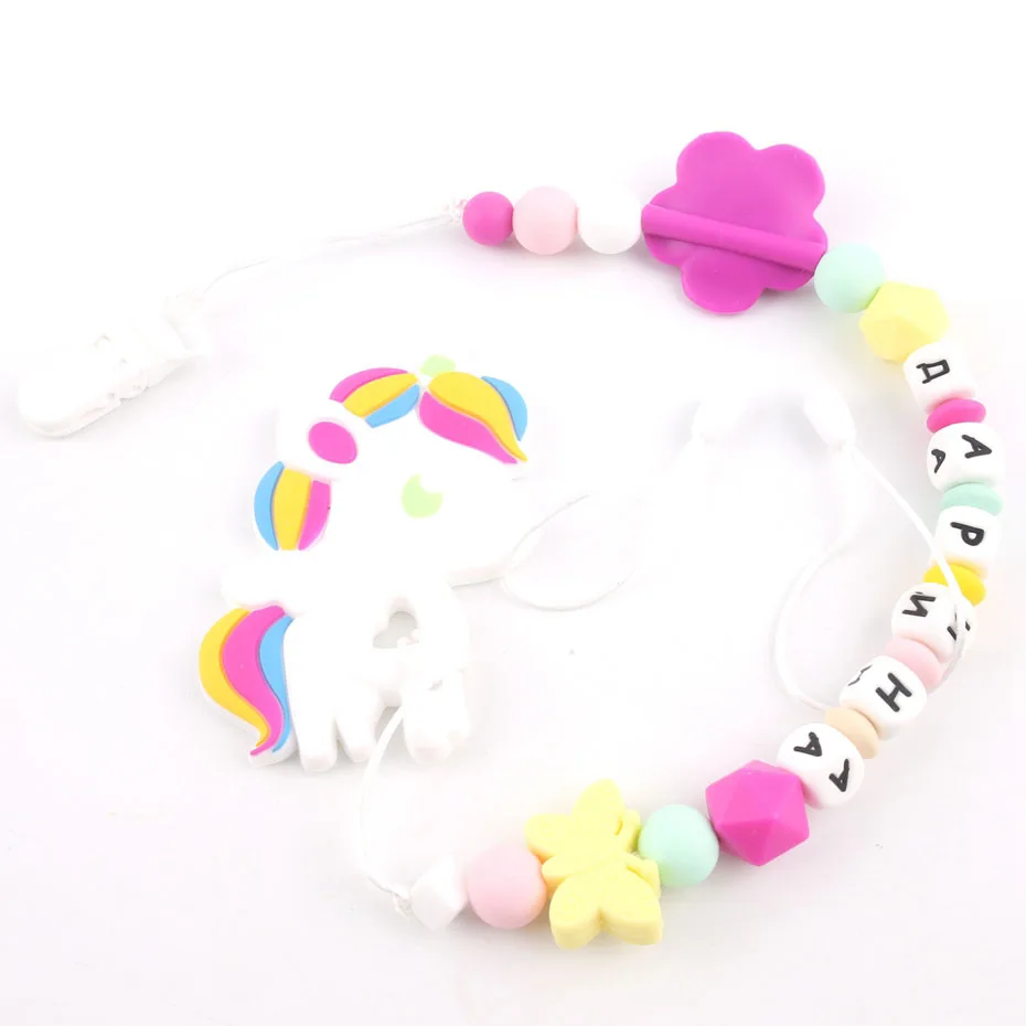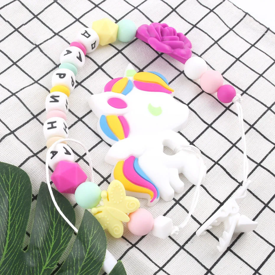 Bite Bites Unicorn Teethers Baby BPA Free Silicone Beads Pacifier Clips Silicone Rose Teething Pacifier Chain Baby Teether
